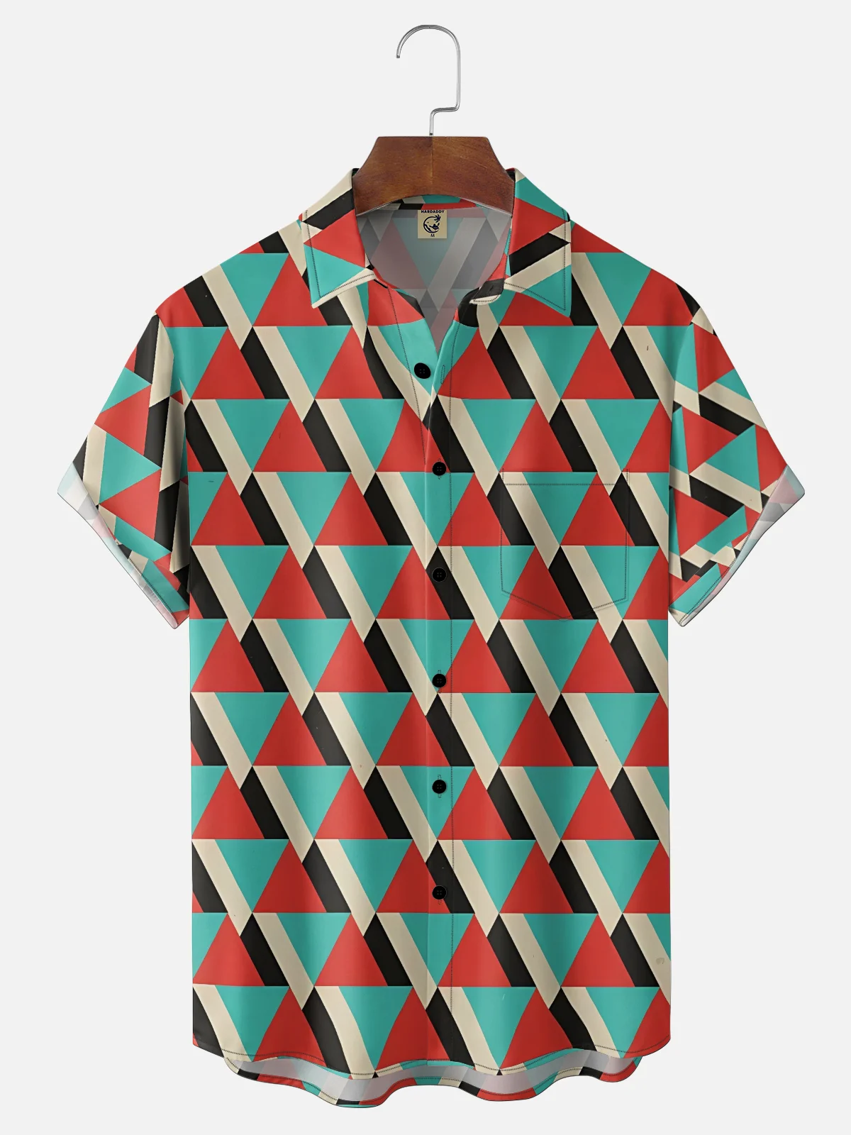 Moisture Wicking Geometric Color Blocks Chest Pocket Holiday Shirt