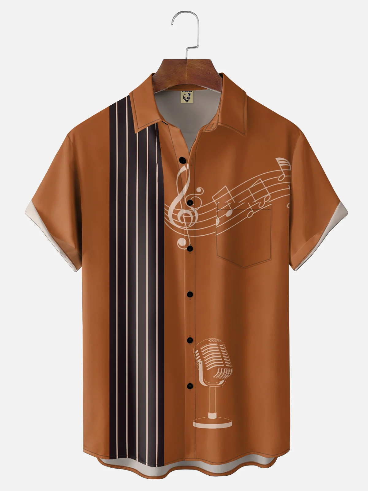 Moisture Wicking Geometric Note Microphone Chest Pocket Holiday Shirt