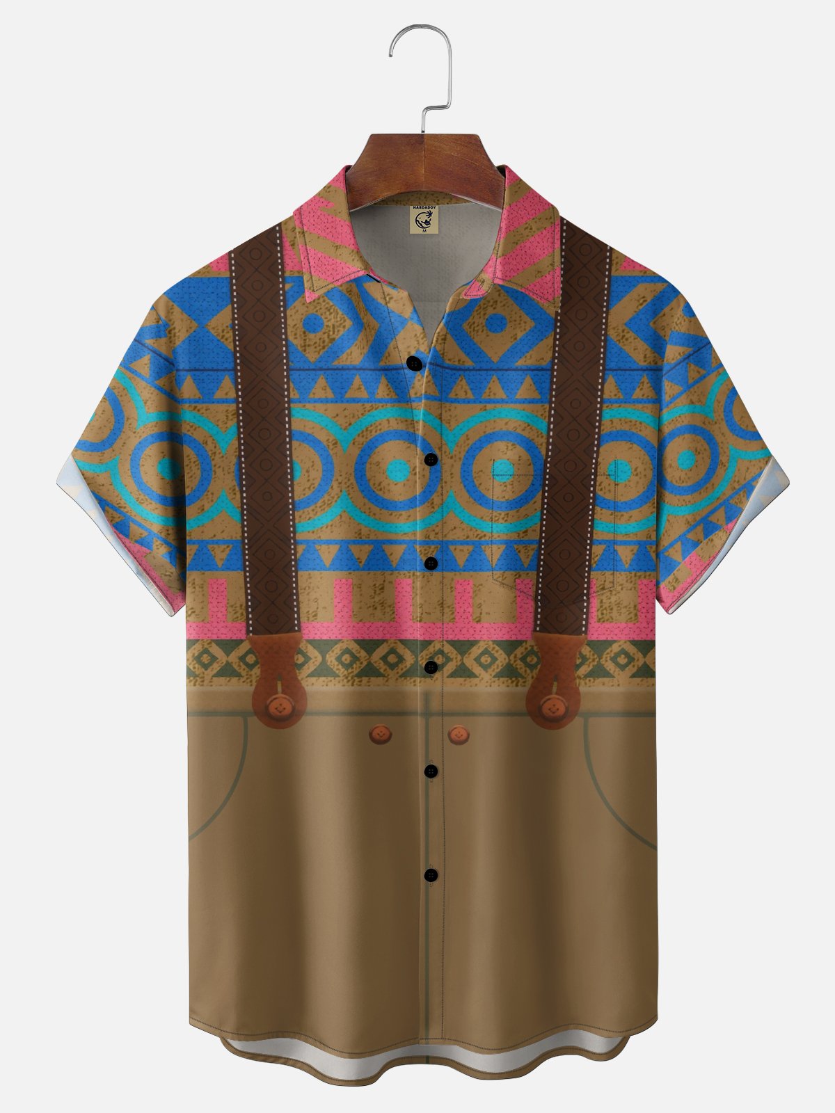 Moisture Wicking Geometric Suspender Dress Chest Pocket Holiday Shirt