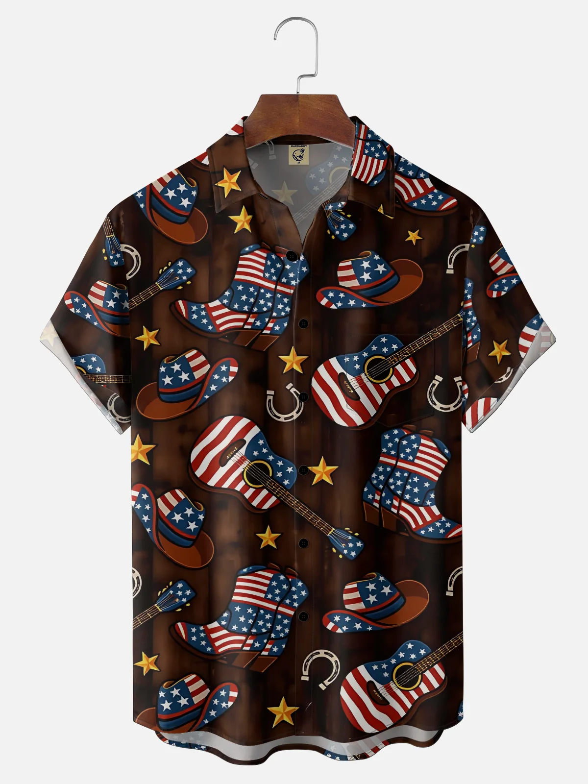 Moisture Wicking Gradient American Flag Guitar Chest Pocket Holiday Shirt
