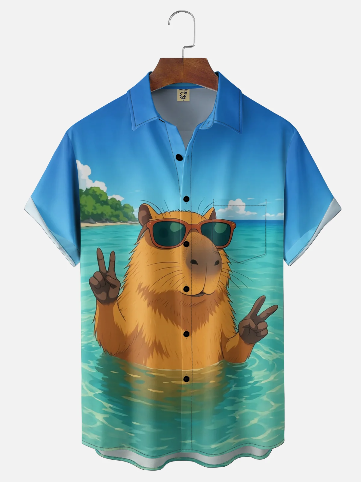 Moisture Wicking Gradient Capybara Chest Pocket Holiday Shirt