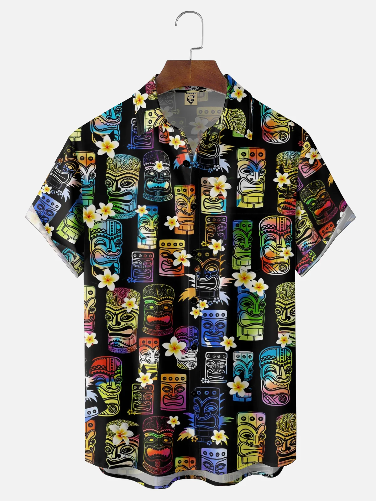 Moisture Wicking Gradient Color TiKi Floral Chest Pocket Holiday Shirt