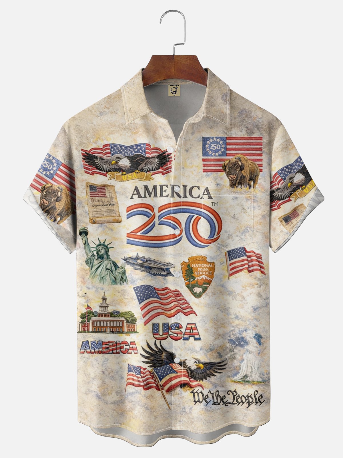 Moisture Wicking Gradient Colors American Flag Eagle Statue of Liberty 250th Anniversary Chest Pocket Holiday Shirt