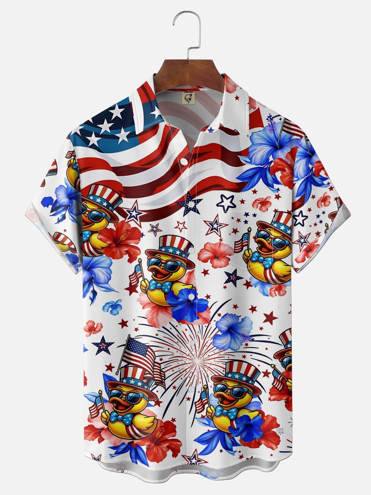 Moisture Wicking Gradient Colors American Flag Little Yellow Duck Flower Chest Pocket Holiday Shirt