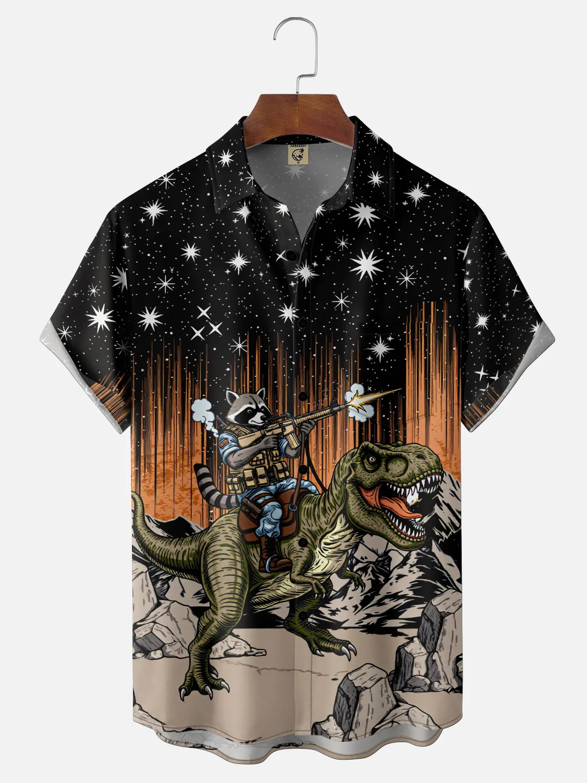 Moisture Wicking Gradient Colors Dinosaur Raccoon Army Chest Pocket Holiday Shirt