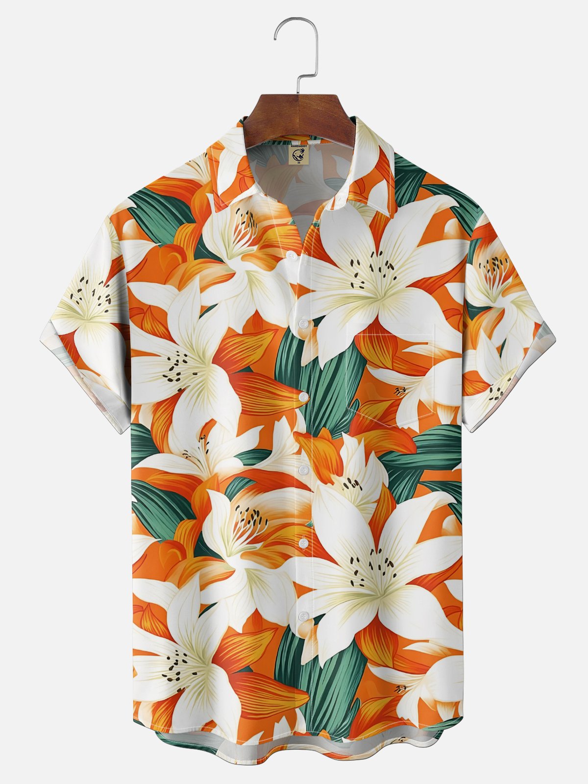 Moisture Wicking Gradient Colors Flowers and Leaves Chest Pocket Holiday Shirt