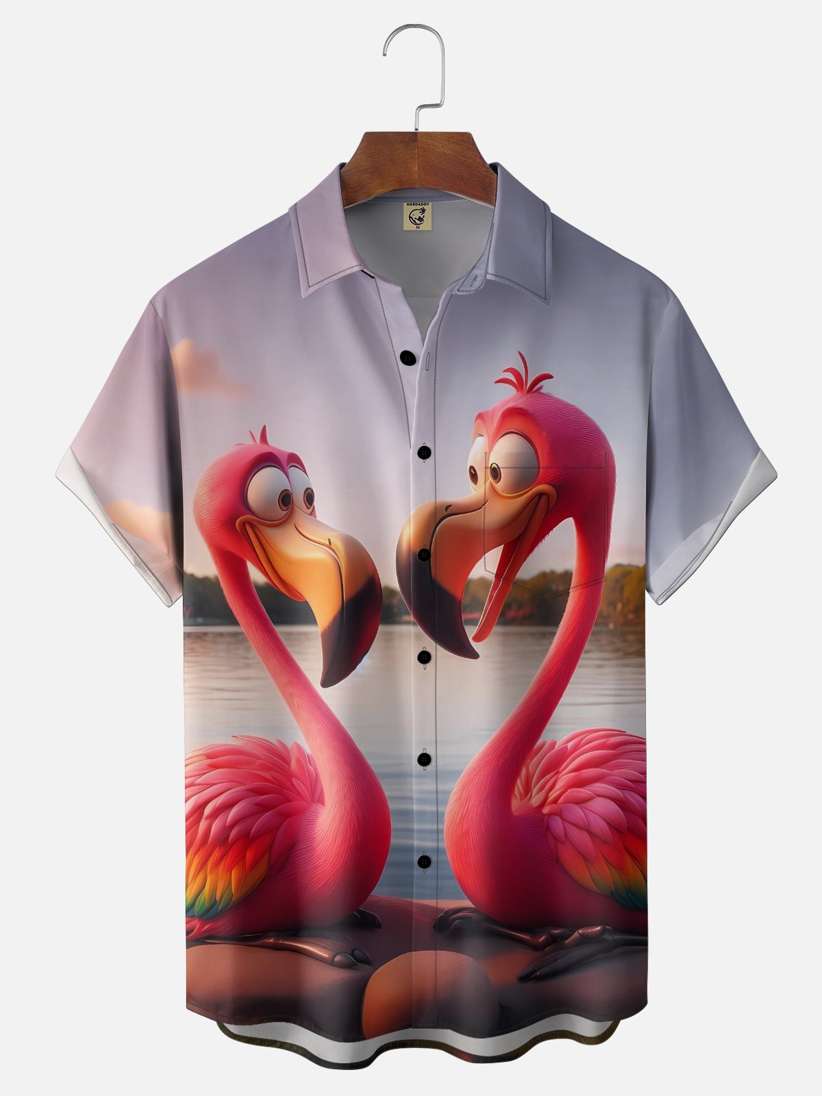 Moisture Wicking Gradient Flamingo Chest Pocket Holiday Shirt