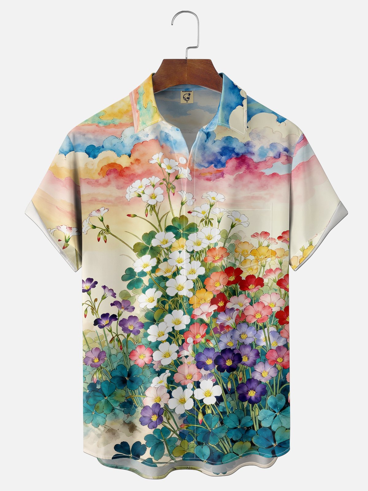 Moisture Wicking Gradient Floral Botanical Shirt Chest Pocke Holiday Hawaiian Shirt