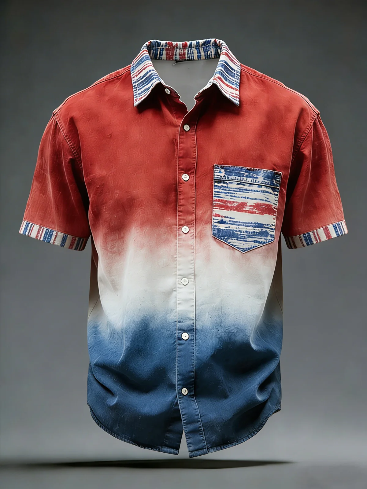 Moisture Wicking Gradient Striped Chest Pocke Holiday Hawaiian Shirt