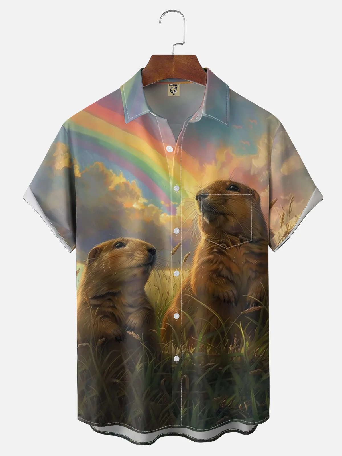 Moisture-Wicking Groundhog Day Fun Groundhog Art Chest Pocket Casual Shirt