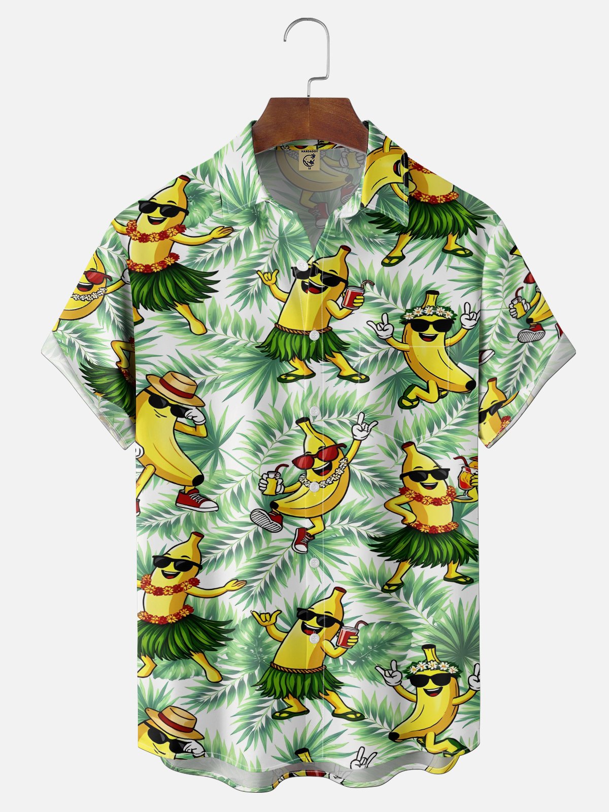 Moisture Wicking Hula Dance Banana Leaves Chest Pocket Holiday Shirt