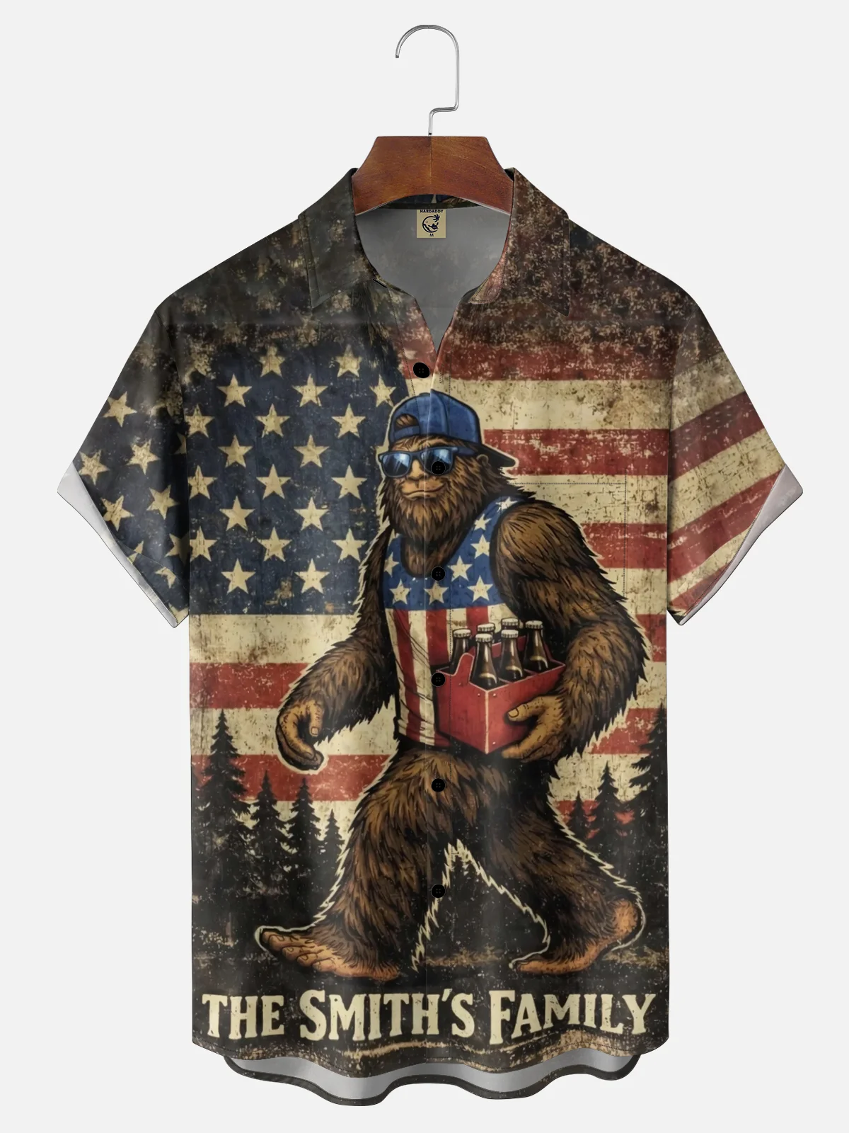 Moisture-Wicking Independence Day Bigfoot Stars and Stripes Chest Pocket Casual Shirt
