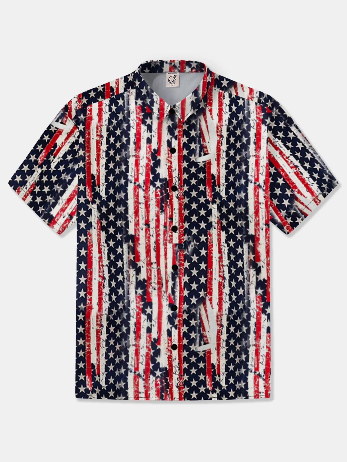 Moisture-wicking Independence Day Memorial Day American Flag Chest Pocket Patriotic Shirt