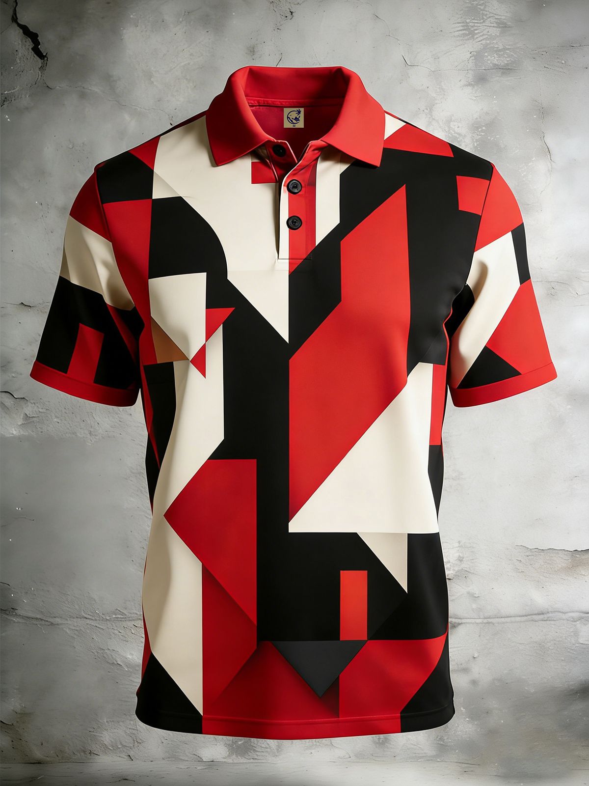Moisture-Wicking Irregular Geometric Color-Block Short-Sleeve Holiday Golf Polo