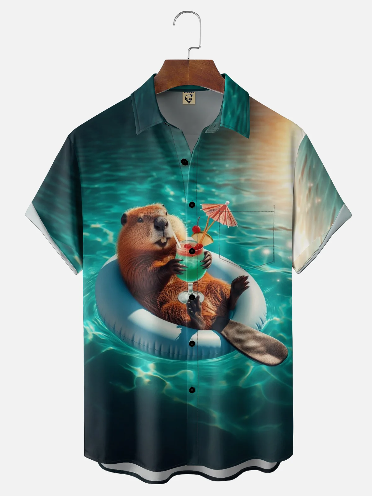 Moisture Wicking Lazy Beaver Cocktail Chest Pocket Holiday Shirt