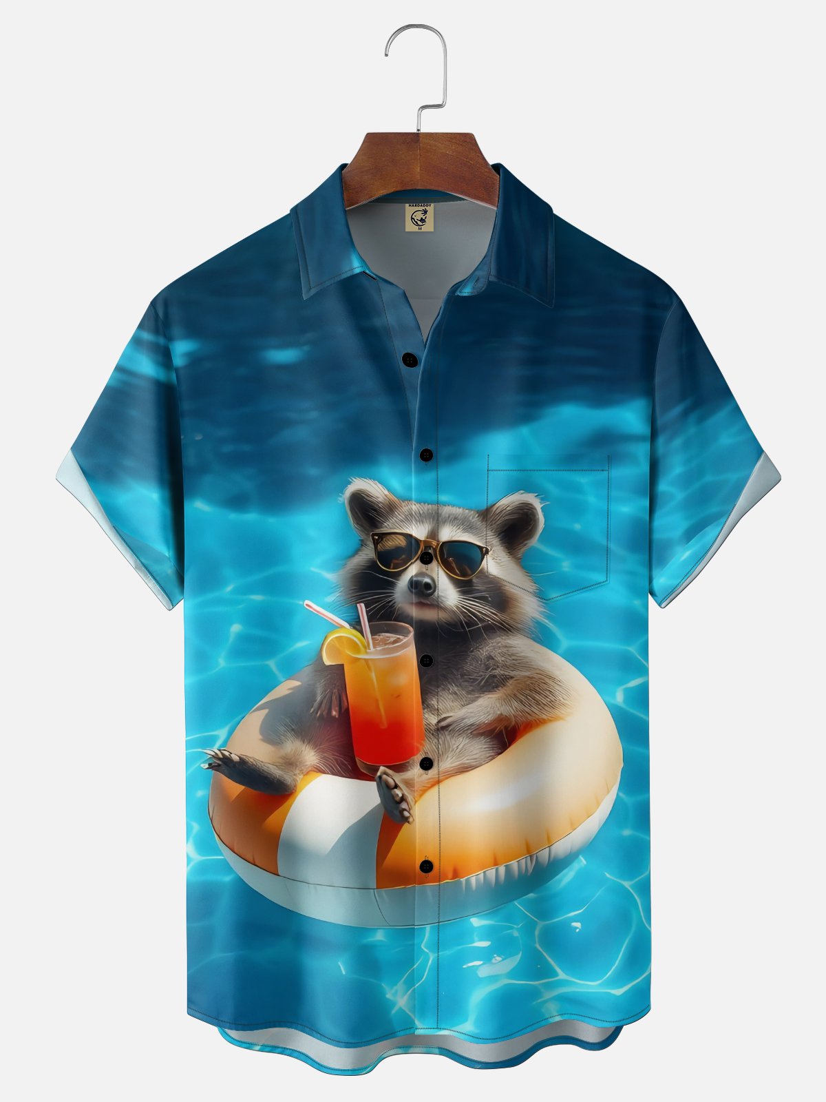 Moisture Wicking Lazy Raccoon Cocktail Chest Pocket Holiday Shirt