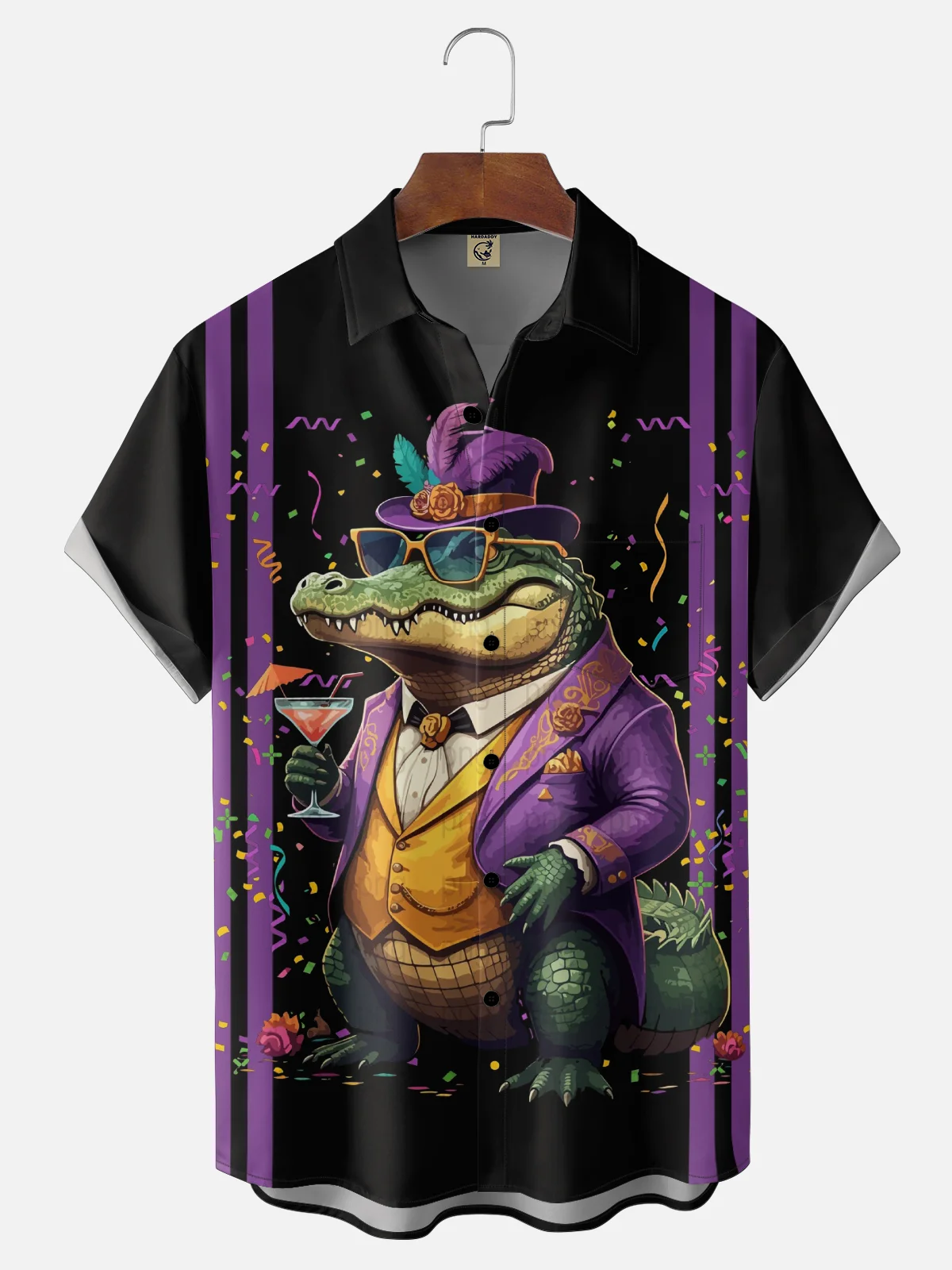 Moisture-wicking Mardi Gras Mask Crocodile Art Chest Pocket Casual Shirt