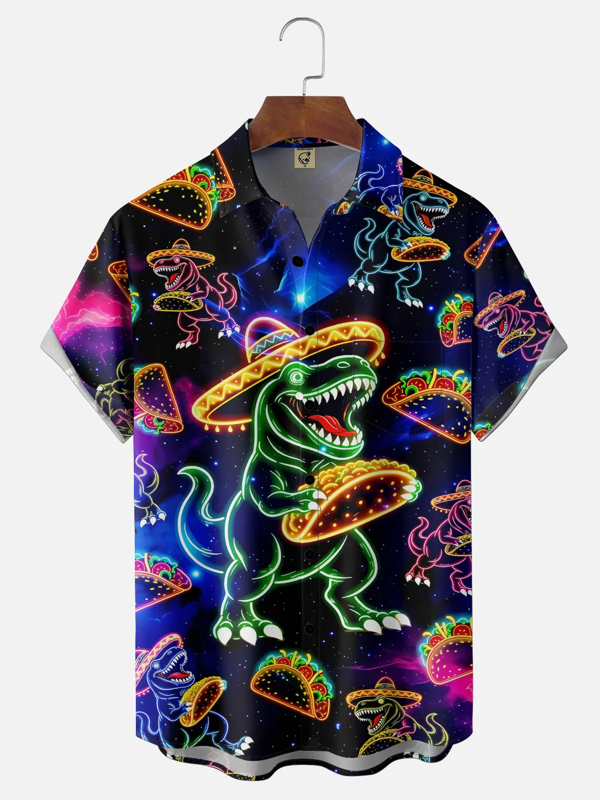 Moisture Wicking May Day Neon Colors Wide-Brimmed Hat Dinosaur Tacos Chest Pocket Holiday Shirt