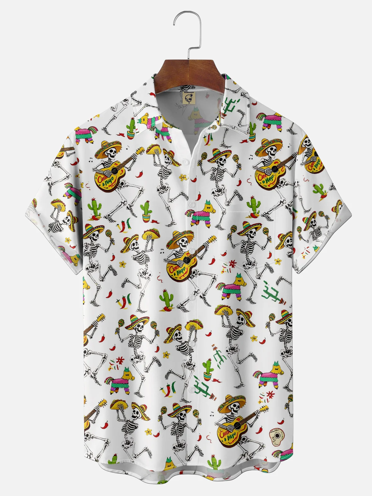 Moisture Wicking May Day Peaked Hat Skull Marabar Guitar Chest Pocket Holiday Shirt