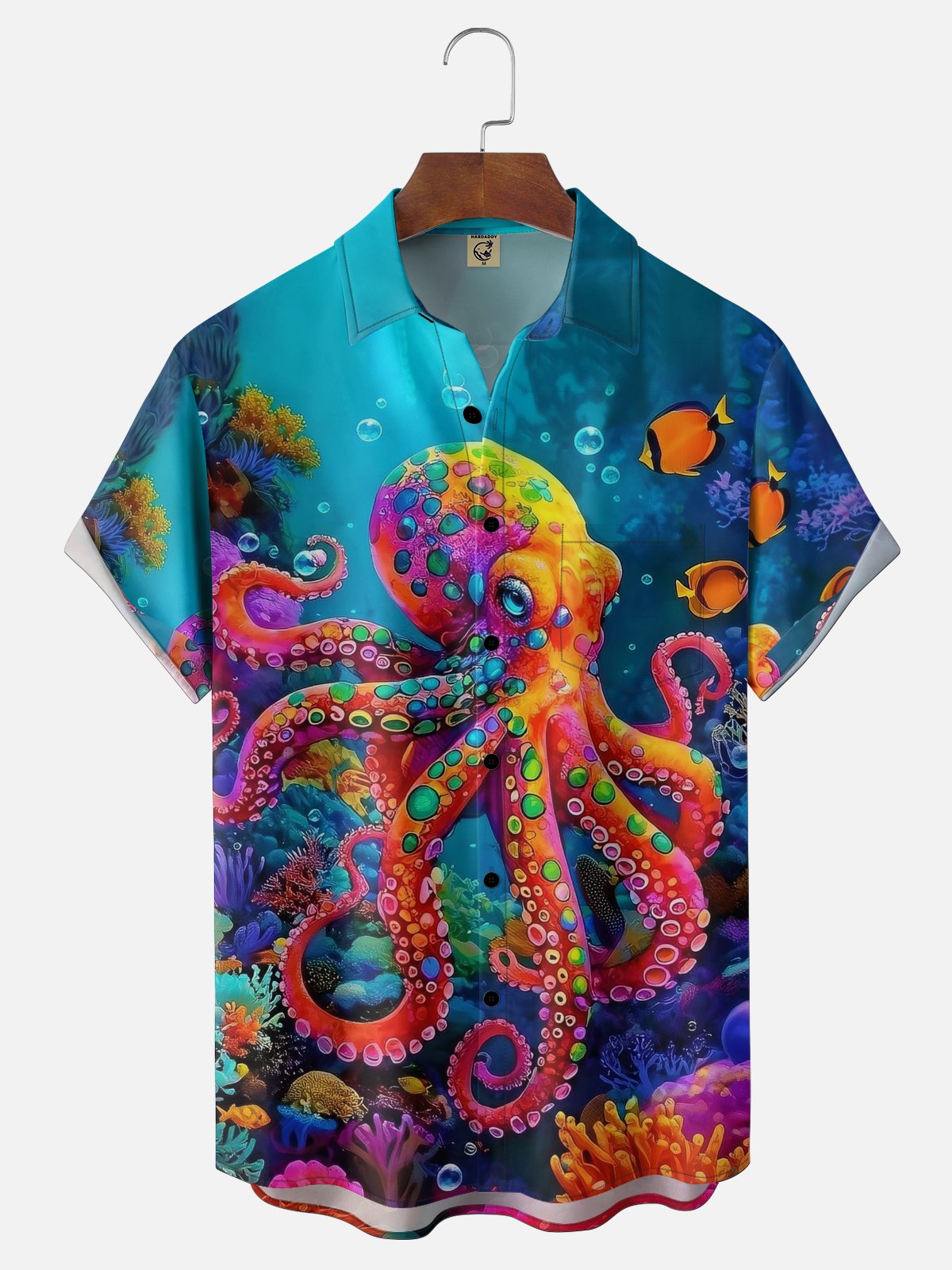 Moisture Wicking Ocean Octopus Chest Pocket Holiday Hawaiian Shirt