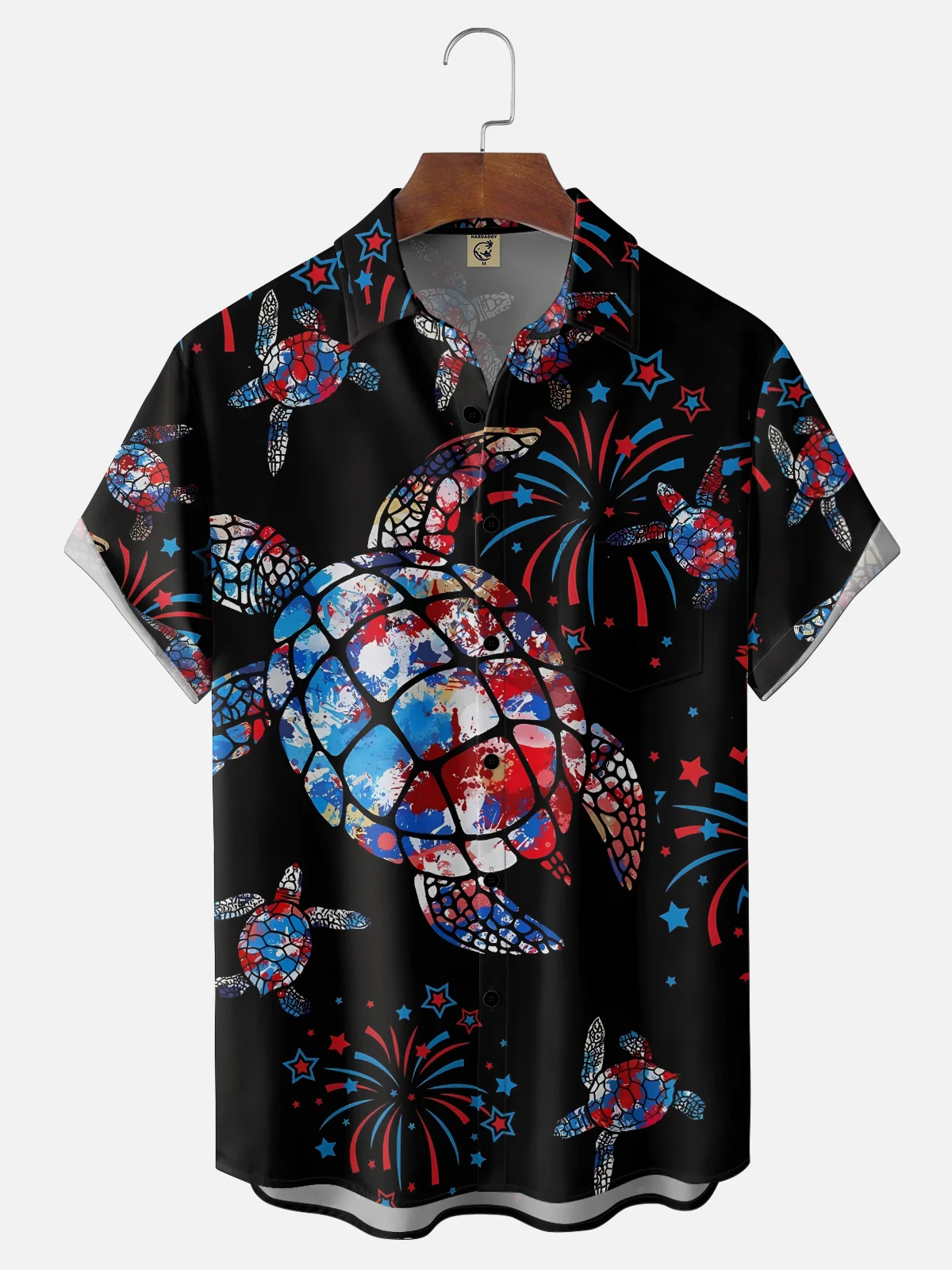 Moisture-wicking Ocean Turtle Fireworks Chest Pocket Casual Shirt
