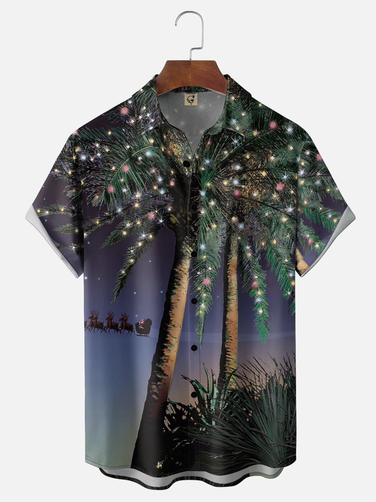 Moisture-wicking Palm Tree Chest Pocket Hawaiian Shirt
