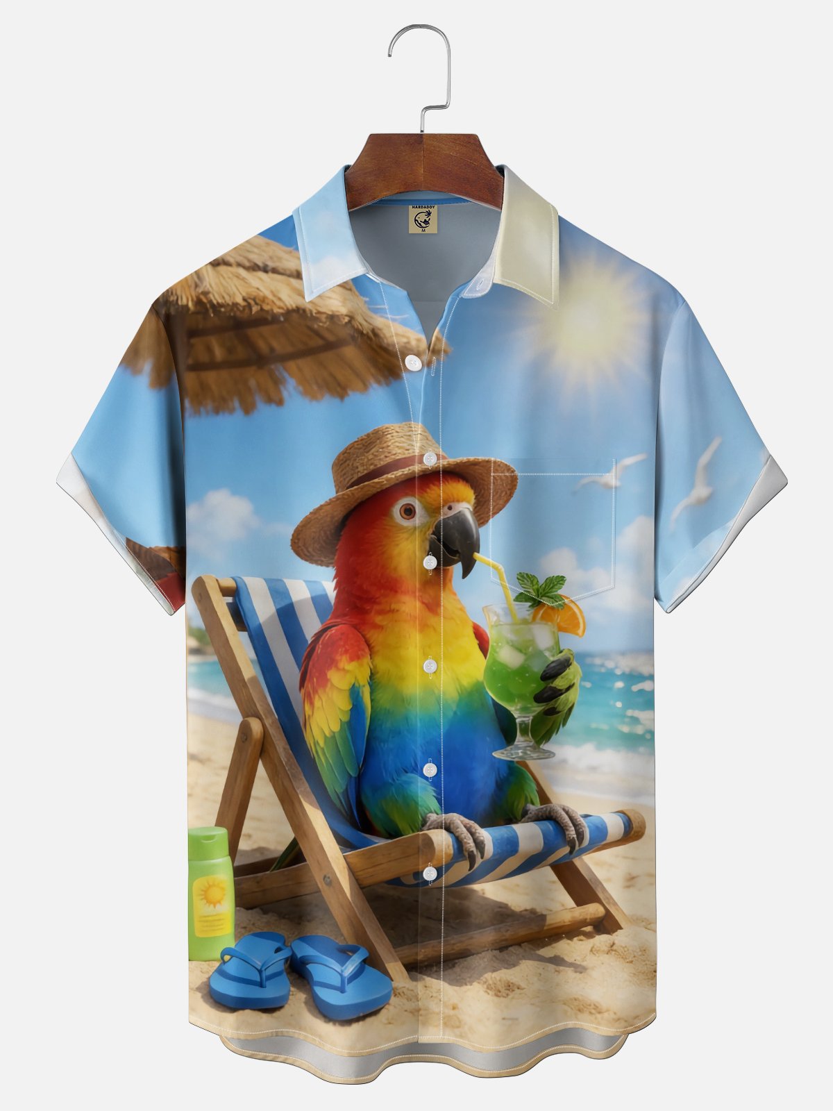 Moisture-wicking Parrot Beach Chest Pocket Hawaiian Shirt