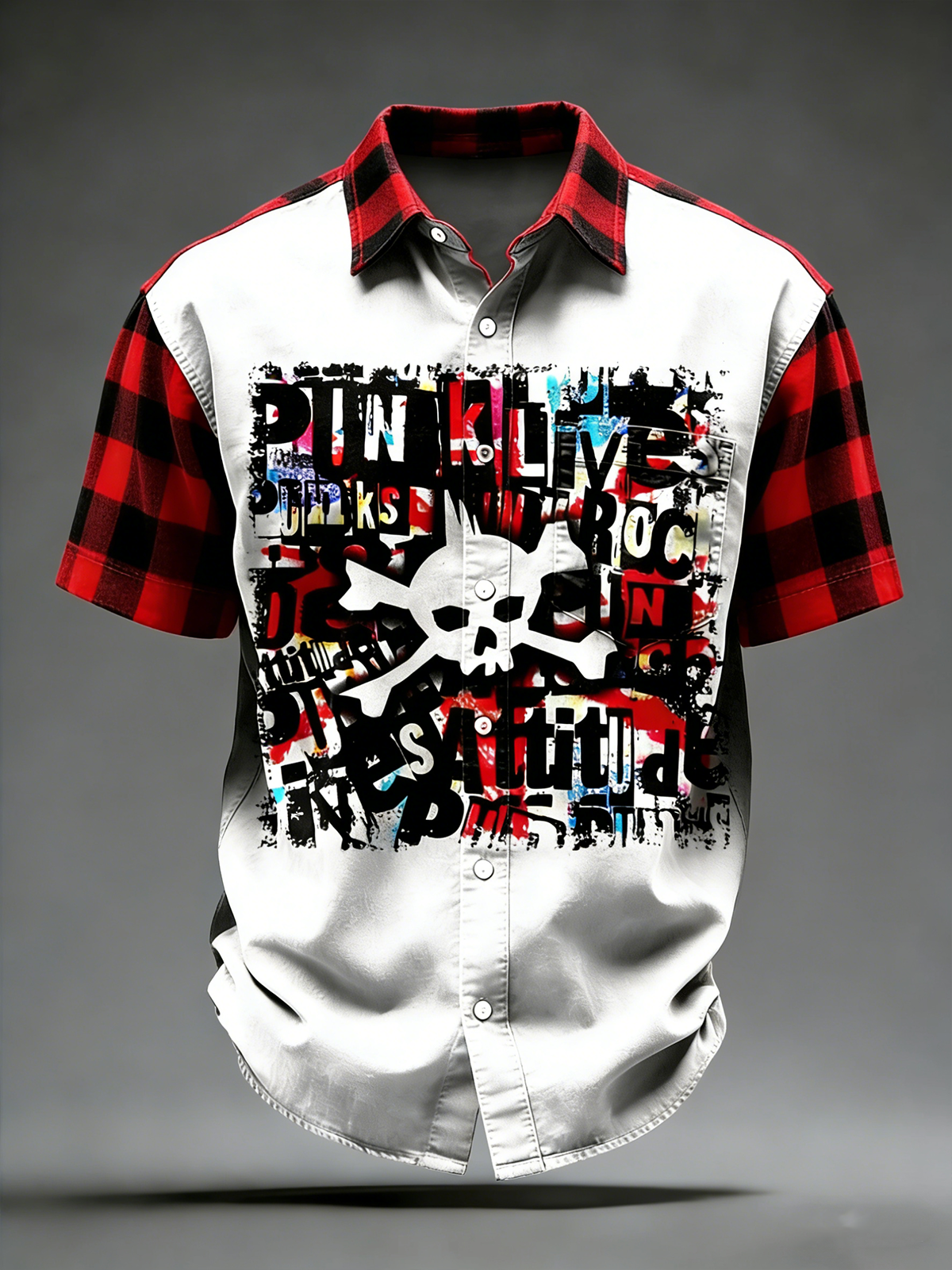 Moisture Wicking Punk Rock Skull Music Checkered Chest Pocke Holiday Hawaiian Shirt