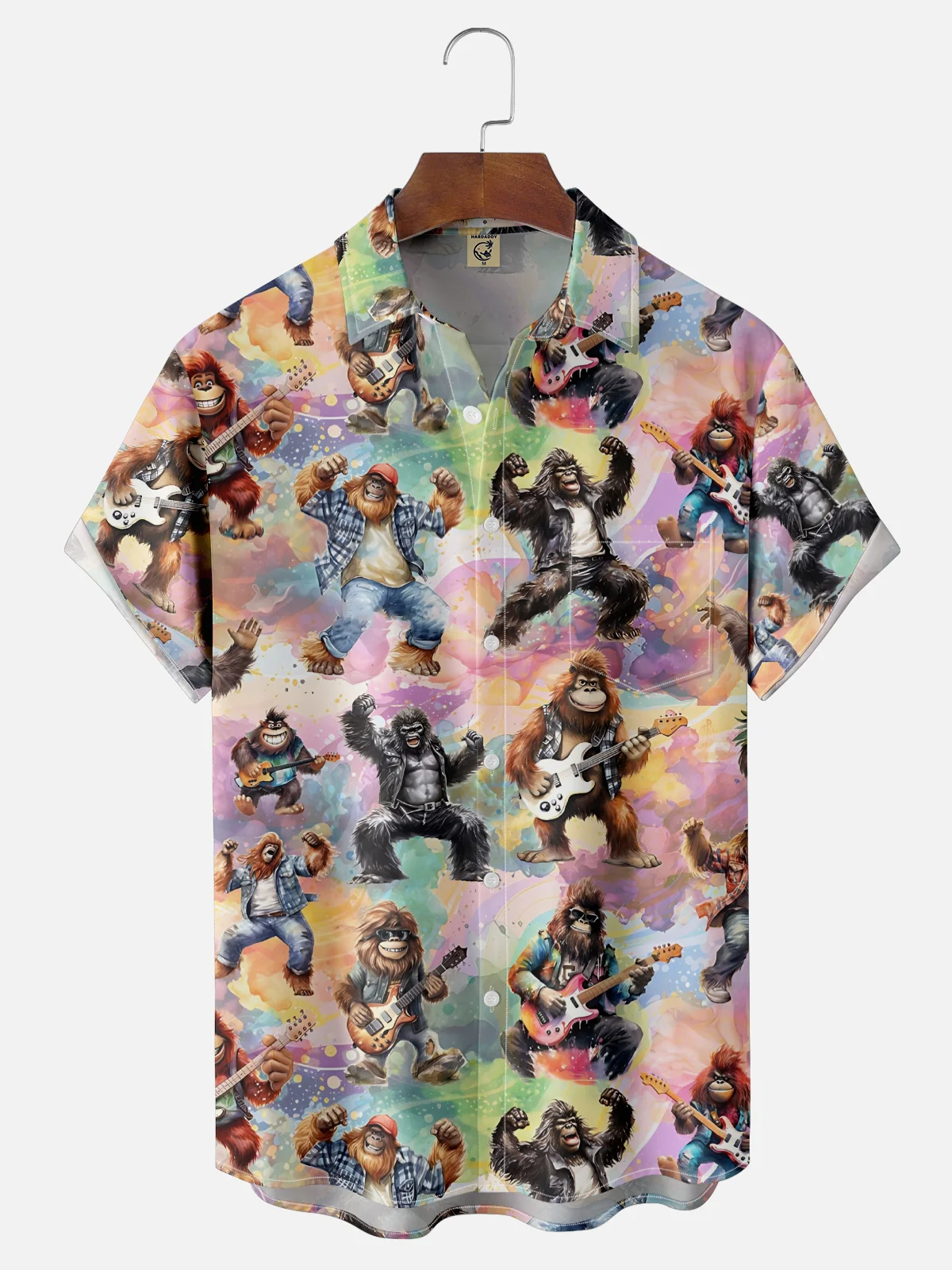 Moisture Wicking Rock Music Bigfoot Chest Pocket Hawaiian Shirt