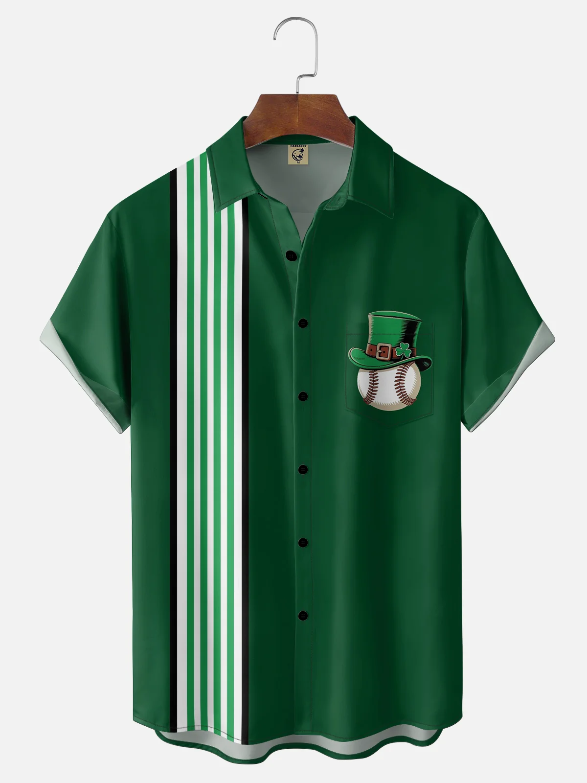 Moisture-wicking Saint Patrick‘s Day Shamrock Baseball Chest Pocket Casual Bowling Shirt