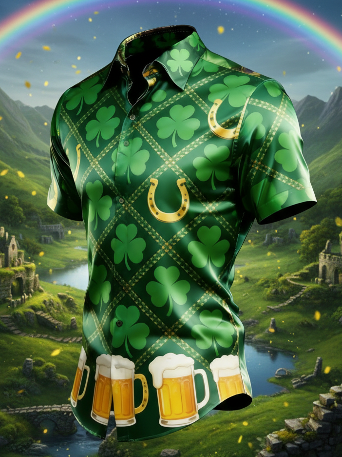 Moisture-wicking Saint Patrick‘s Day Shamrock Beer Casual Shirt