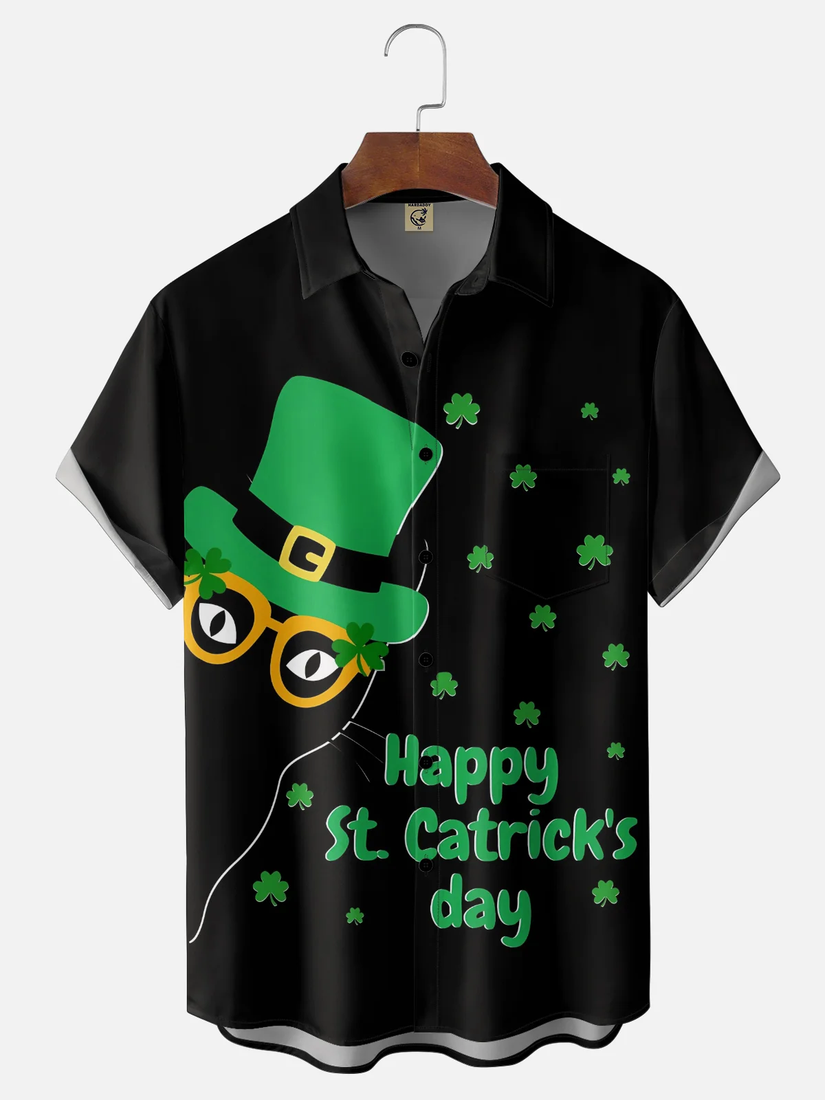Moisture-wicking Saint Valentine‘s Day Heart Black Cat Chest Pocket Casual Shirt