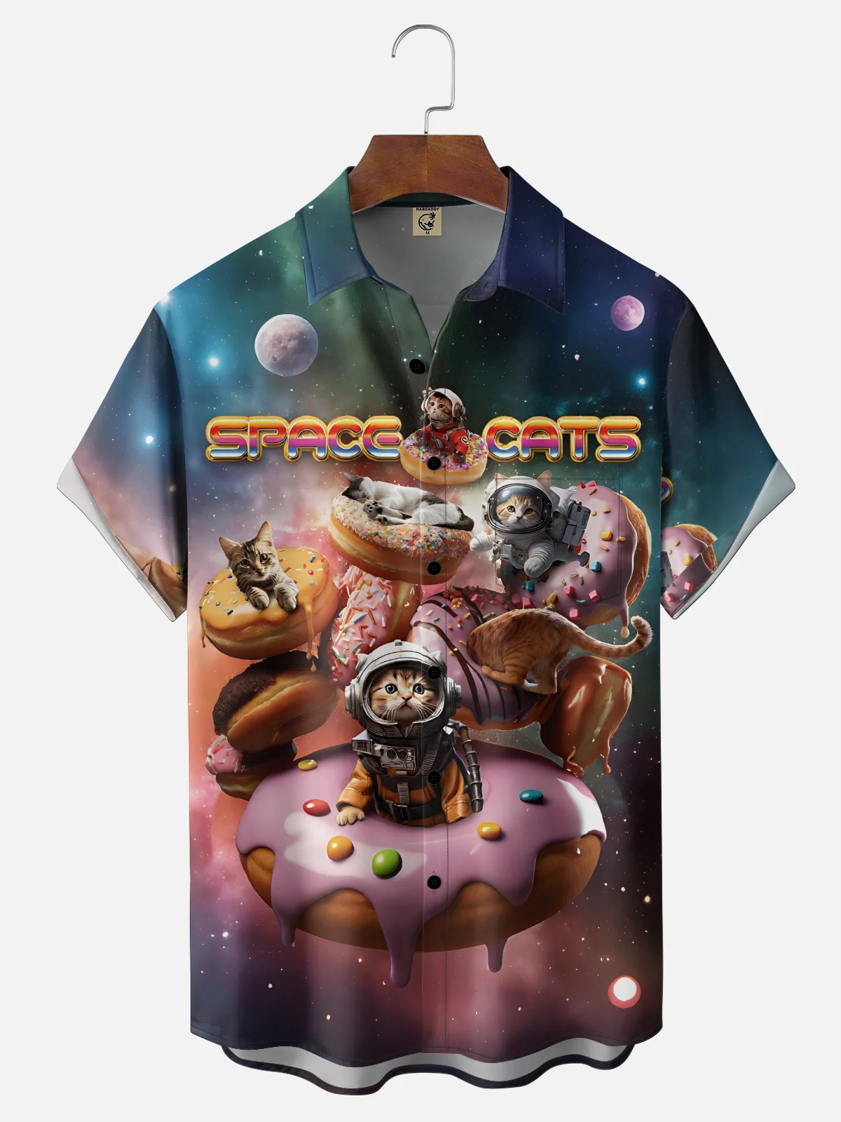 Moisture-wicking Space Cat Donut Funny Chest Pocket Casual Shirt