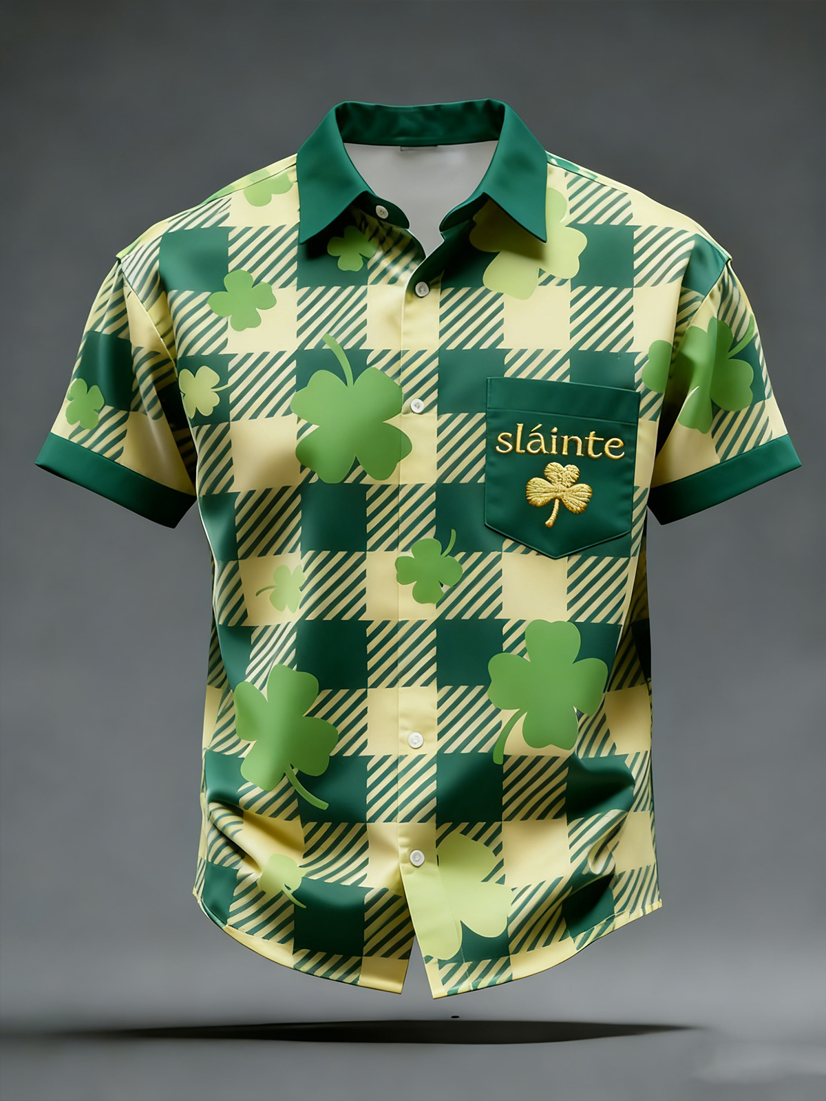 Moisture Wicking St. Patrick's Day Chest Pocket Holiday Hawaiian Shirt