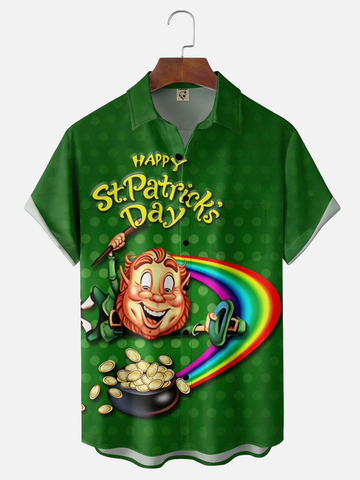 Moisture Wicking St. Patrick's Day Fairy Rainbow Coins Chest Pocket Holiday Shirt
