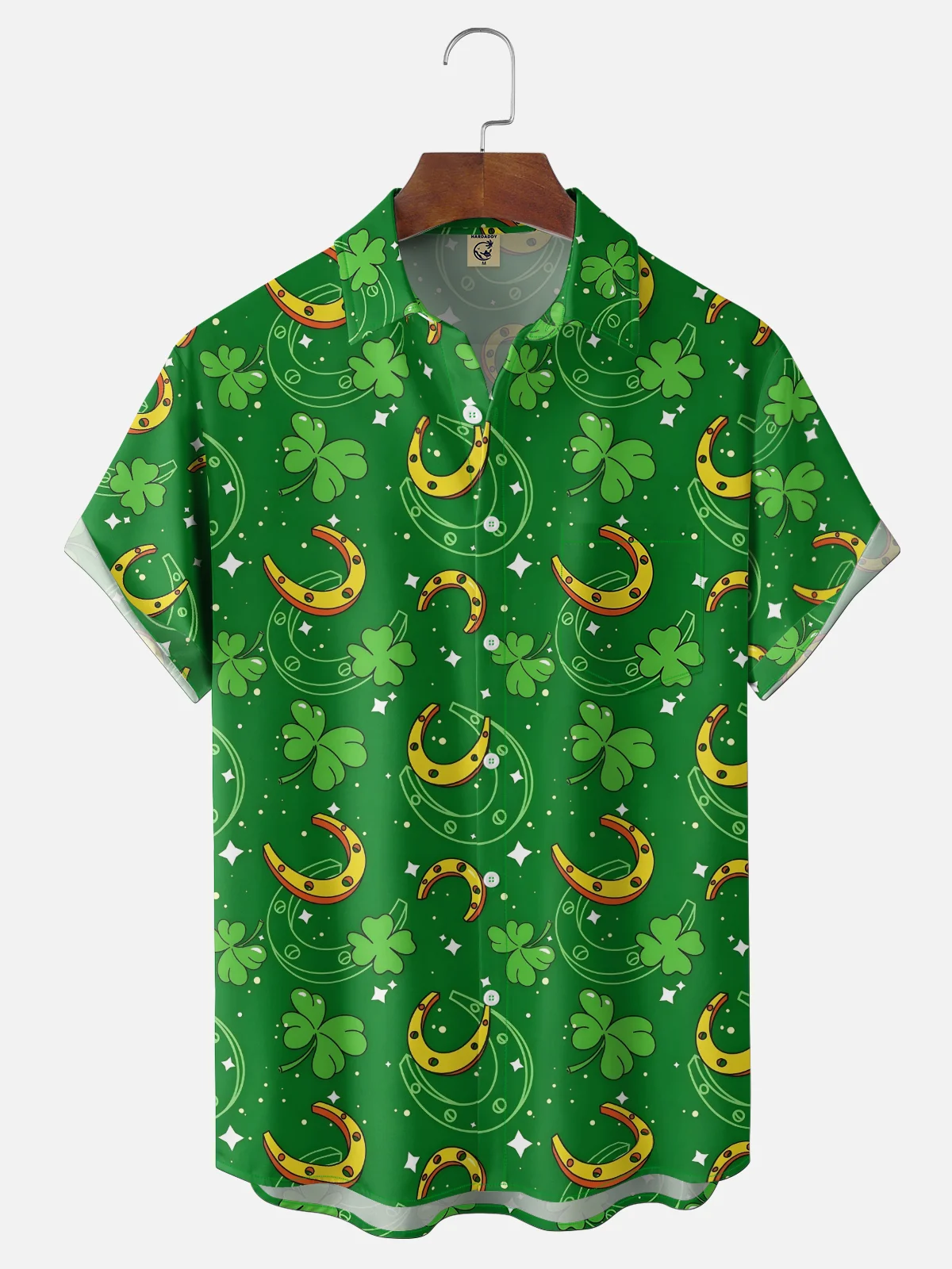 Moisture Wicking St. Patrick's Day Four-Leaf Clover Chest Pocket Holiday Shirt