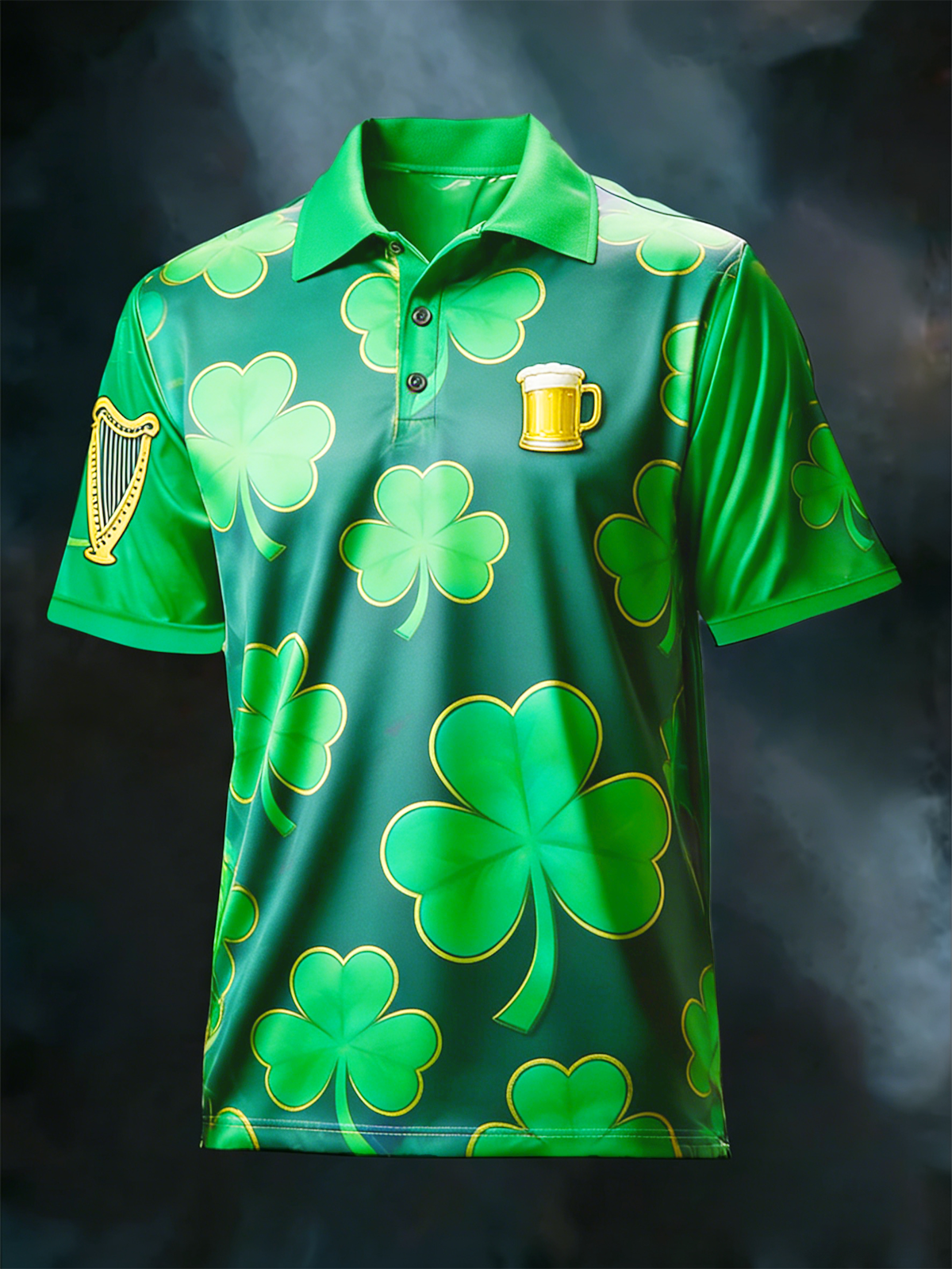 Moisture-Wicking St. Patrick's Day Shamrock Beer Short Sleeve Golf Polo
