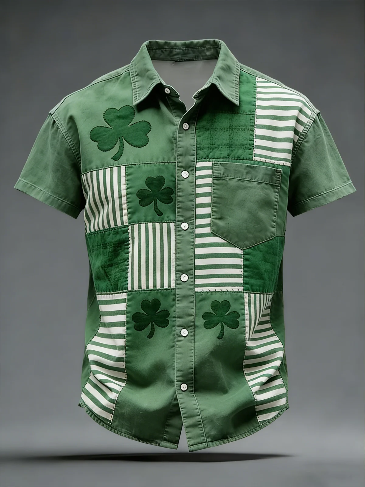 Moisture Wicking St. Patrick's Day Shamrock Chest Pocket Holiday Hawaiian Shirt