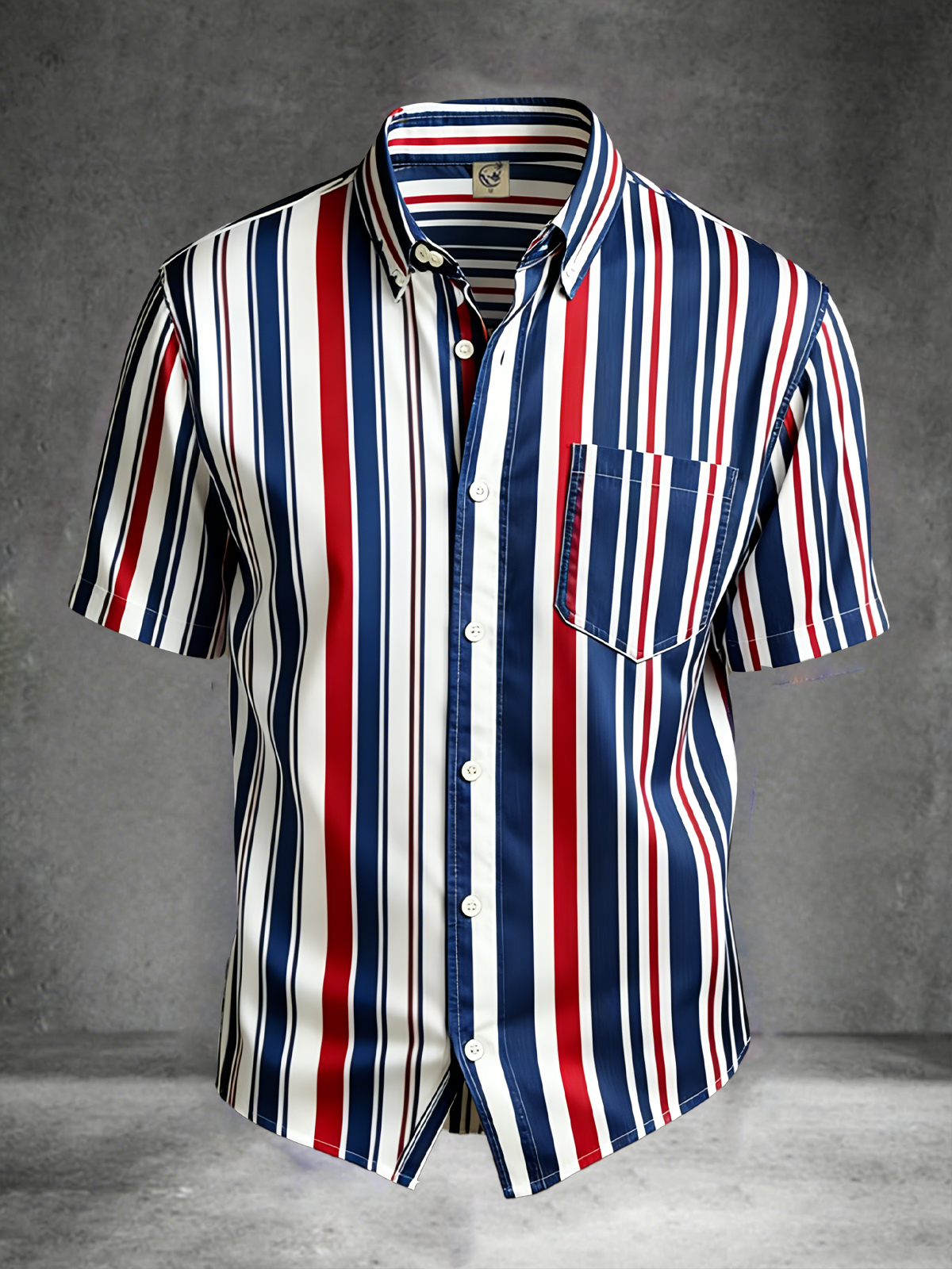 Moisture-Wicking Striped Chest Pocket Hawaiian Shirt