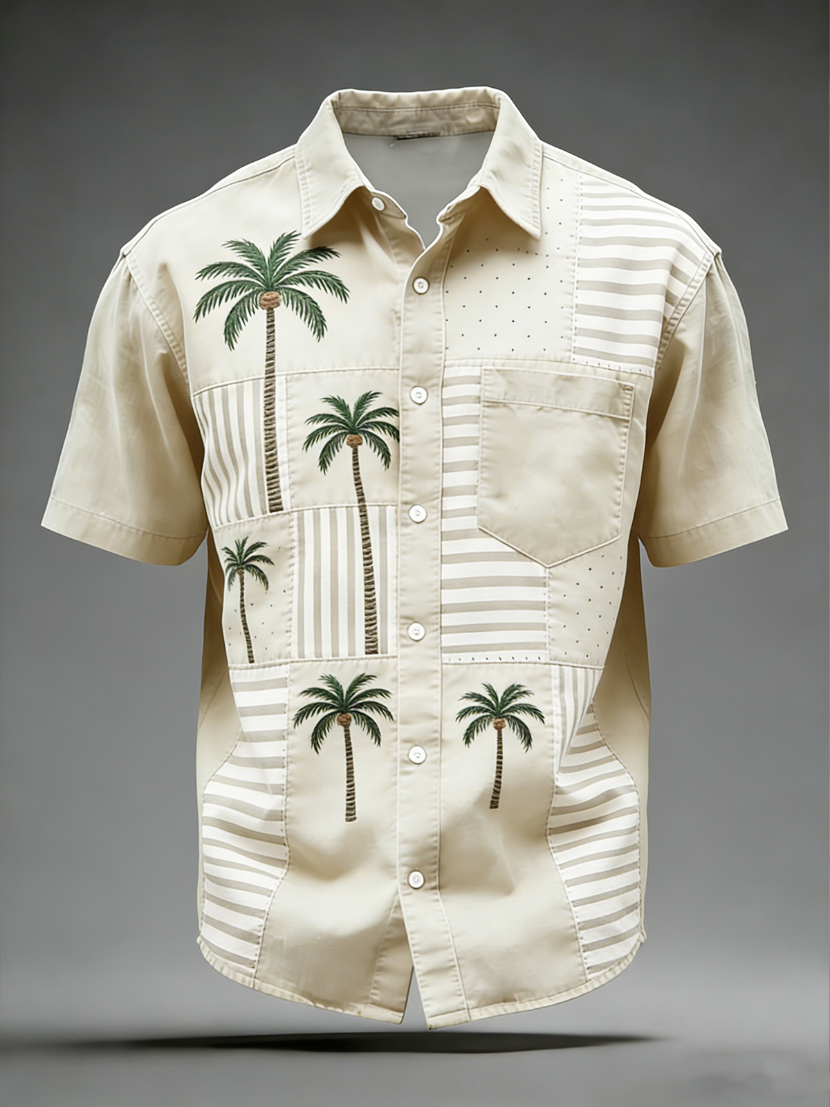 Moisture Wicking Striped Coconut Tree Chest Pocke Holiday Hawaiian Shirt