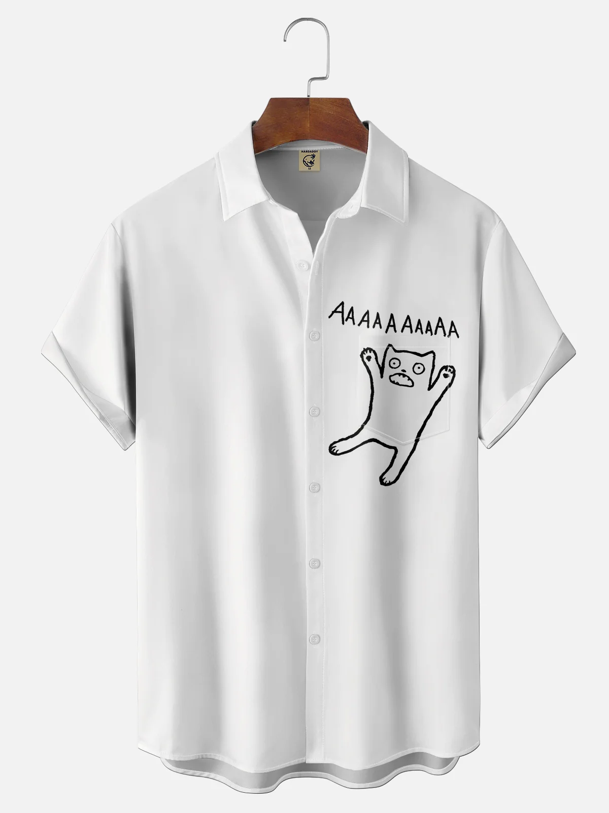 Moisture-wicking Terrified Cat AAAAAAA Chest Pocket Casual Shirt