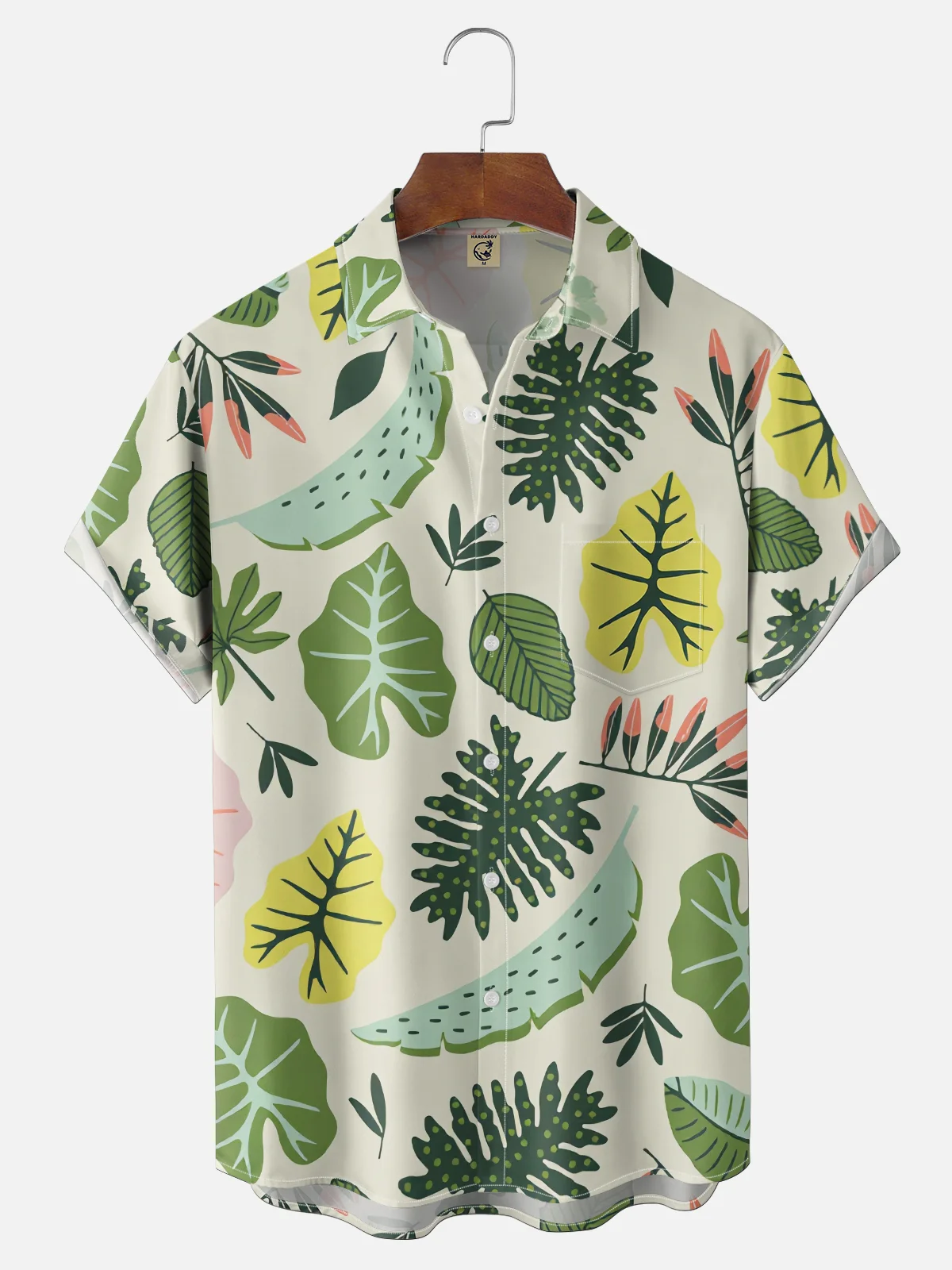 Moisture-wicking Tropical Palm Tree Chest Pocket Hawaiian Shirt