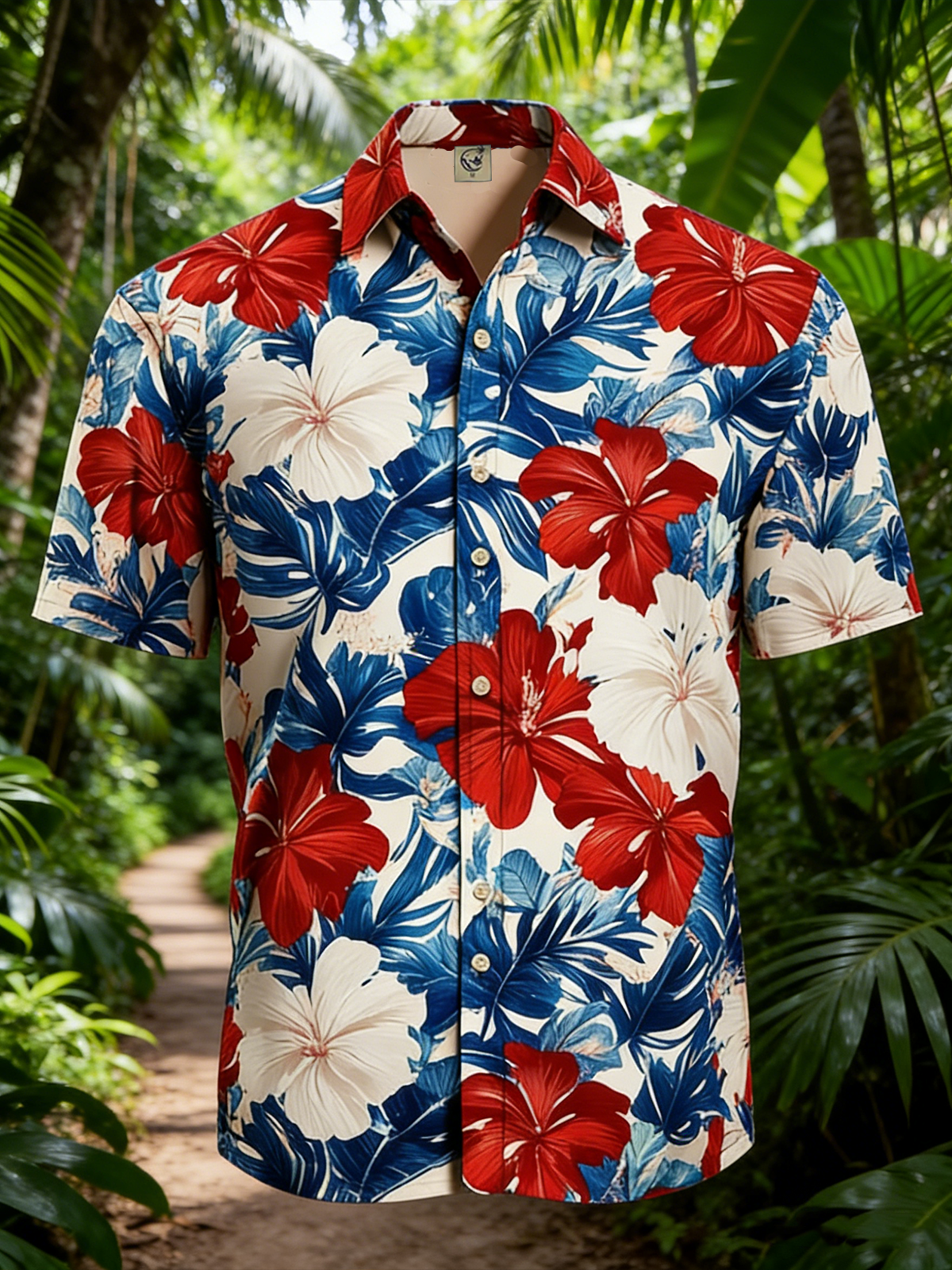 Moisture-wicking Tropical Palm Tree Chest Pocket Hawaiian Shirt