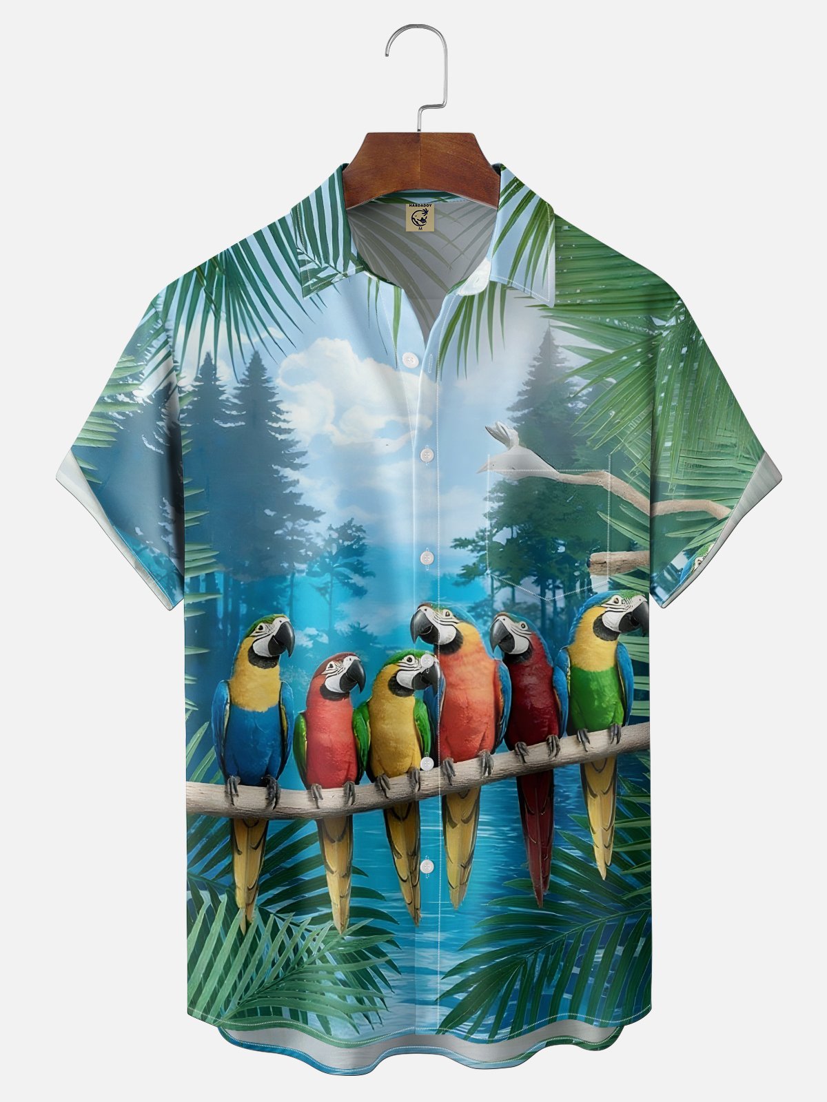 Moisture Wicking Tropical Plants Parrot Chest Pocke Holiday Hawaiian Shirt