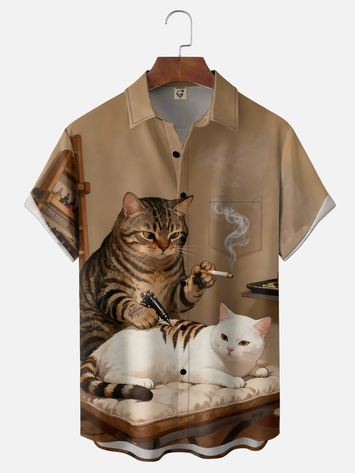 Tall Size Moisture-wicking Cat Funny Chest Pocket Casual Shirt