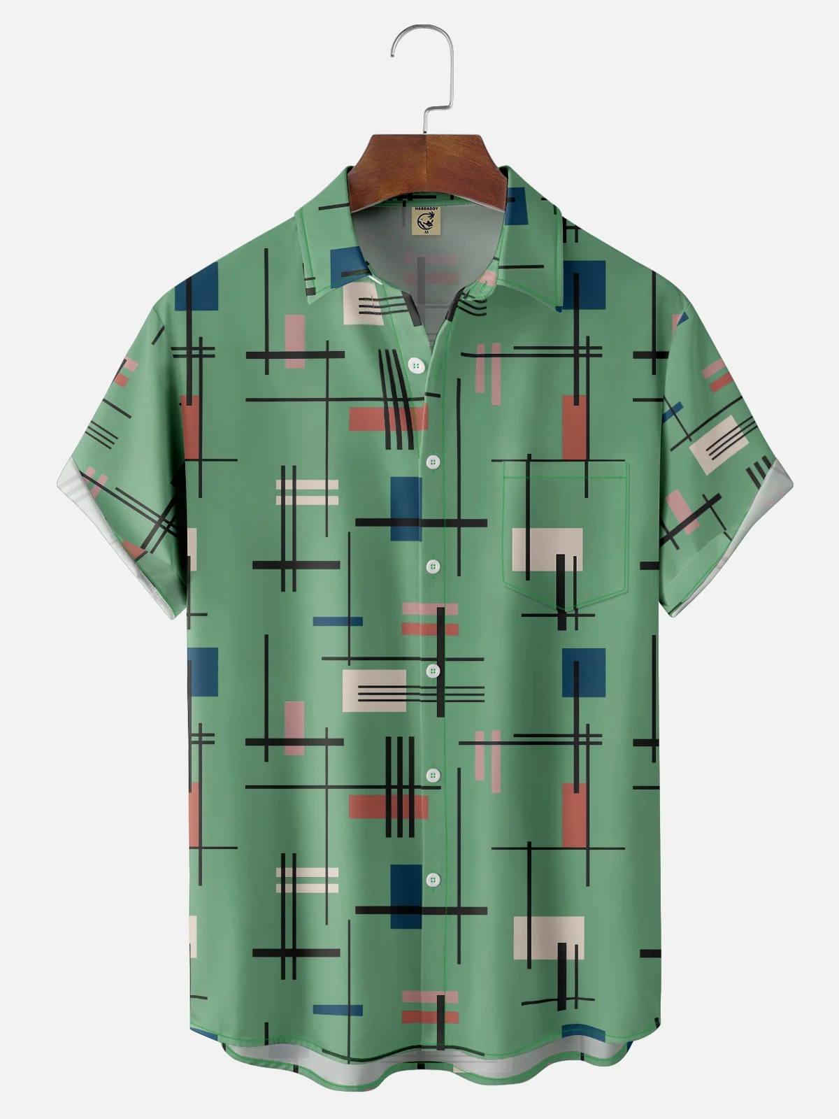 Tall Size Moisture-wicking Geometric Chest Pocket Casual Shirt