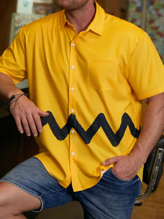 Hardaddy Cartoon Chest Pocket Short Sleeves Casual Shirt