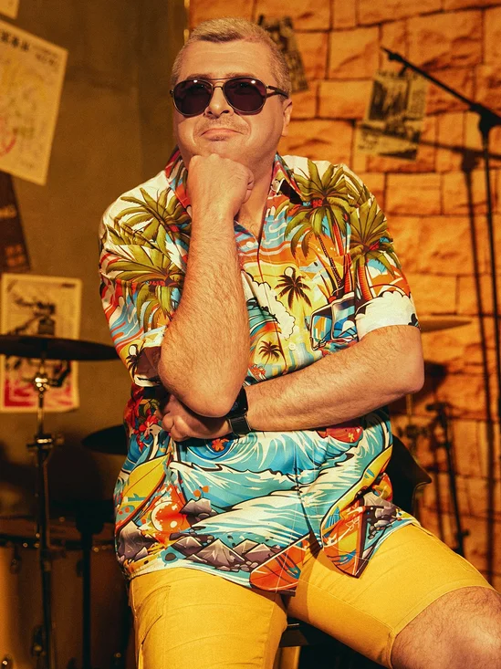 Big Size Moisture Wicking Crazy Christmas Vacation Eddie Chest Pocket Hawaiian Shirt