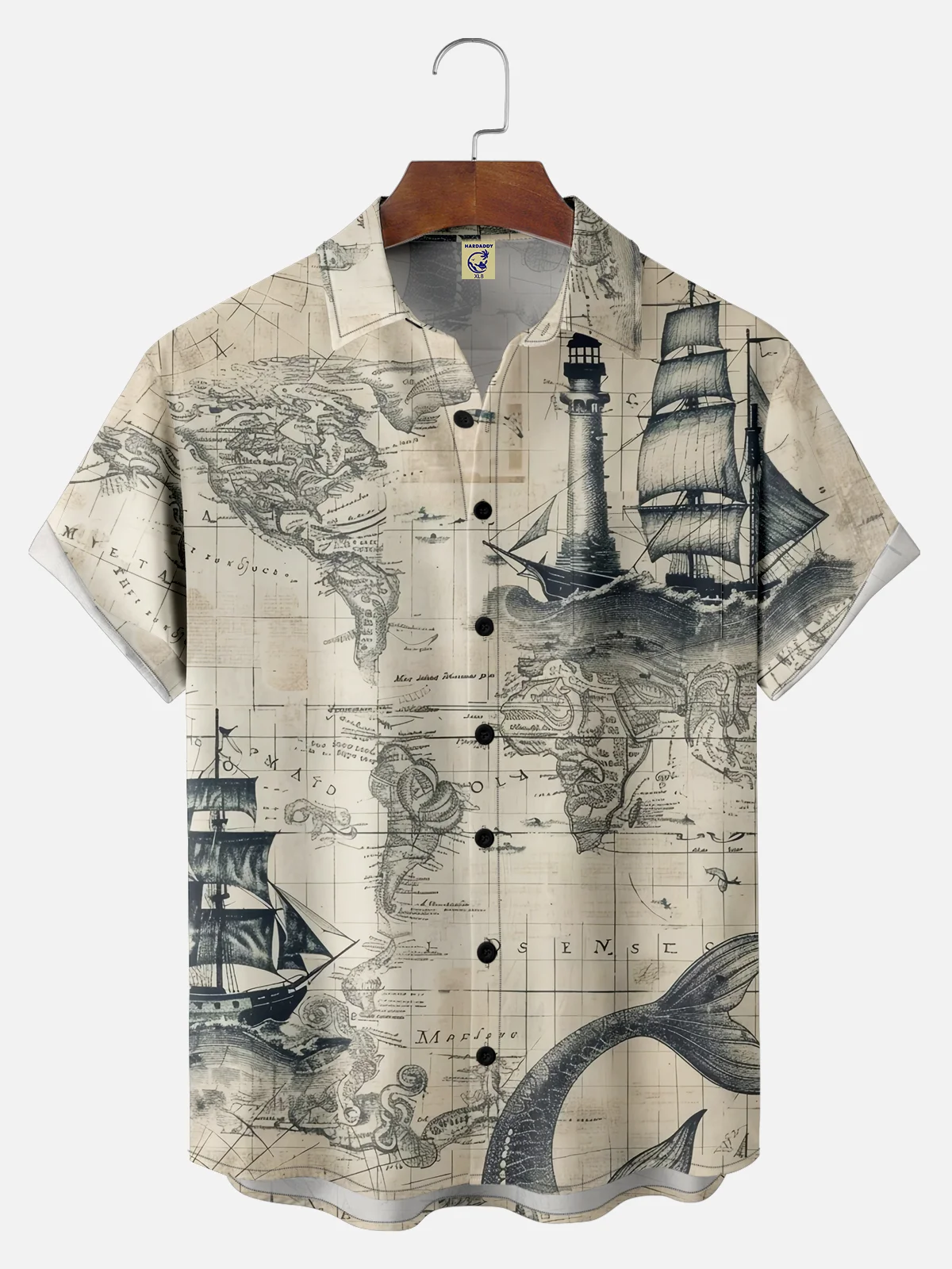 Big Size Moisture-wicking Ocean Map Sailboat Lighthouse Chest Pocket Casual Shirt