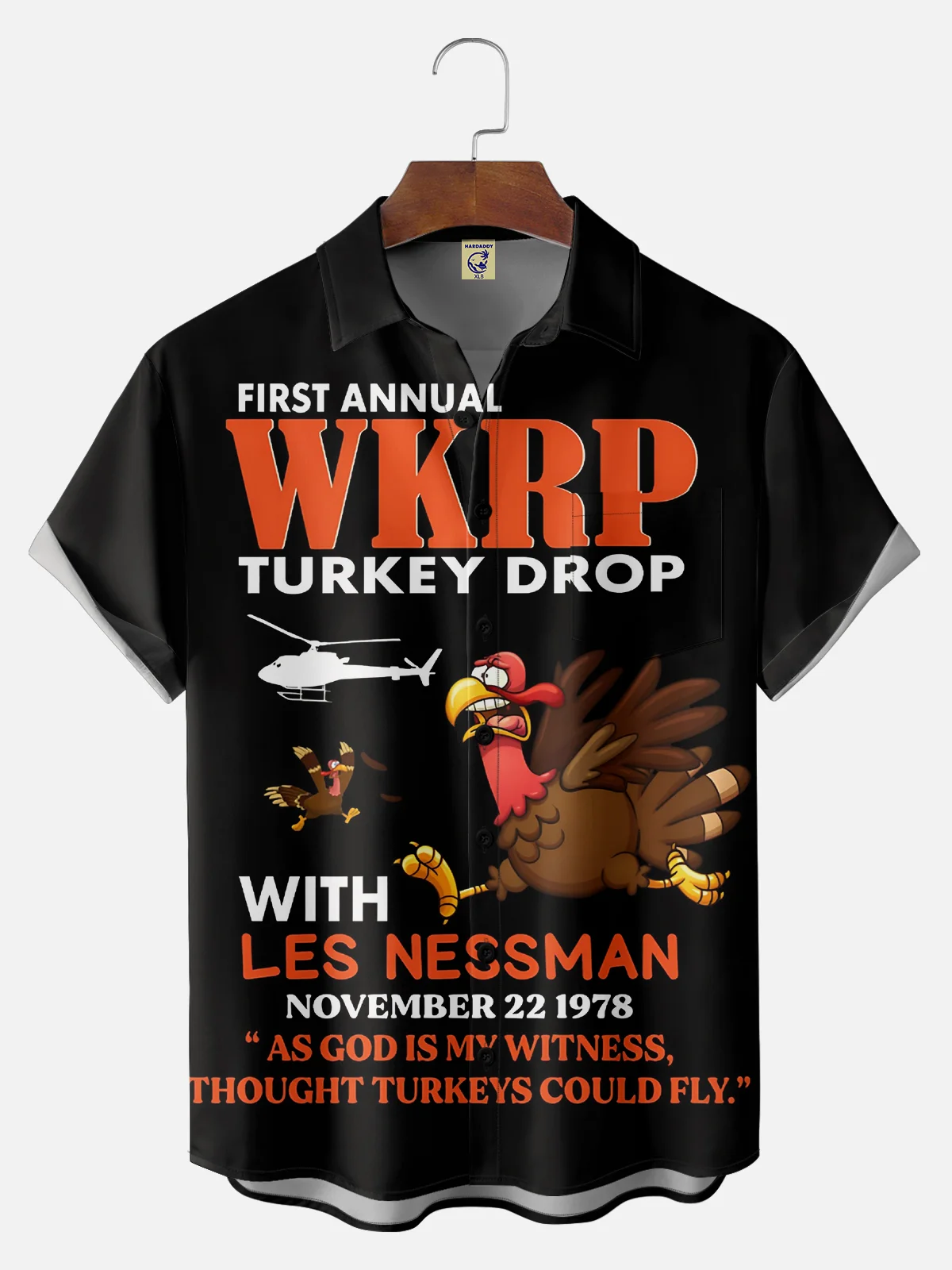 Big Size Moisture Wicking Thanksgiving Fun Turkey Chest Pocket Hawaiian Shirt